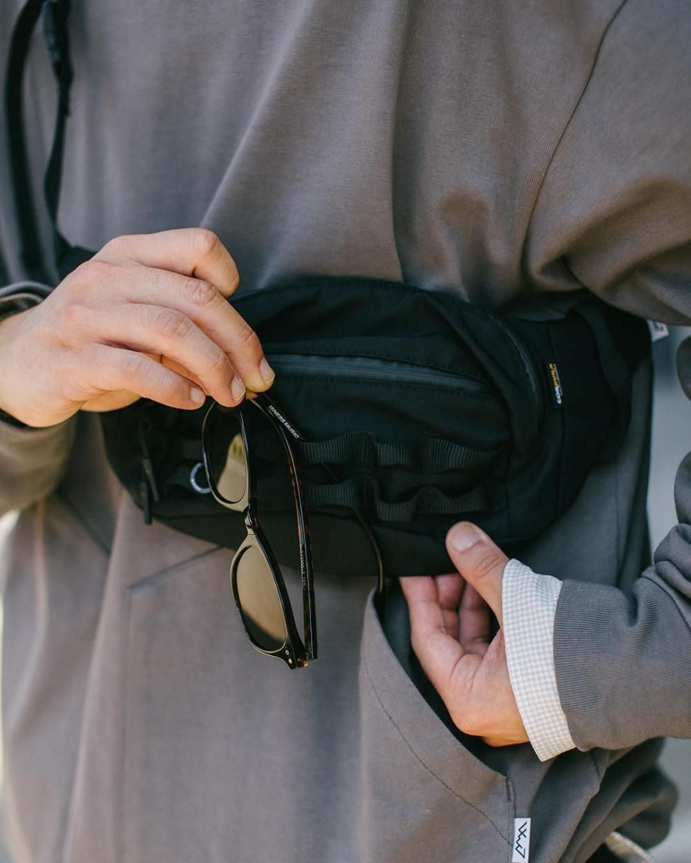必要最低限の荷物をスマートに収納できる、ミニマルデザインのウエストバッグです。