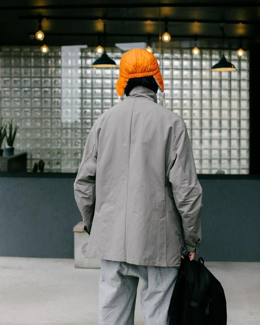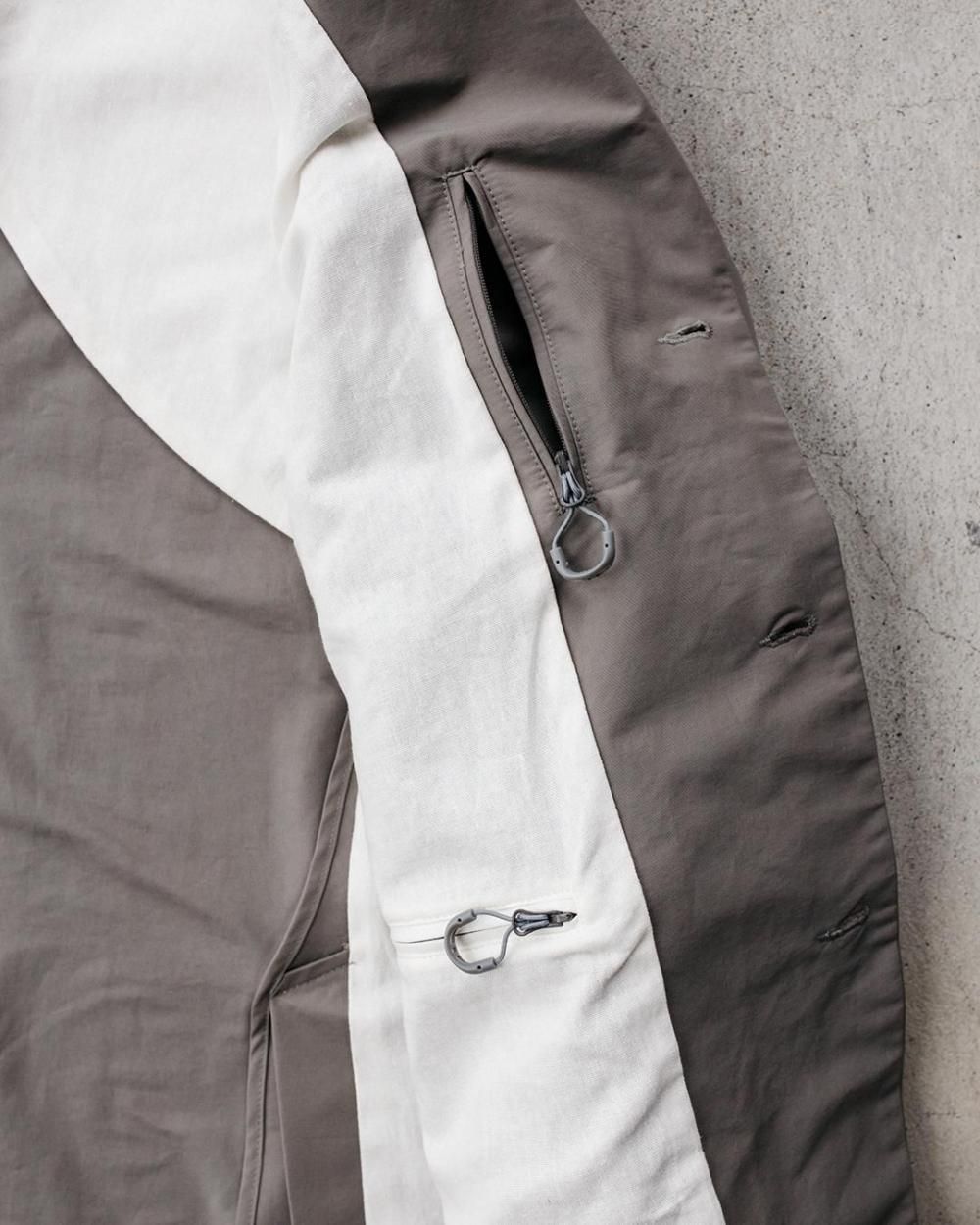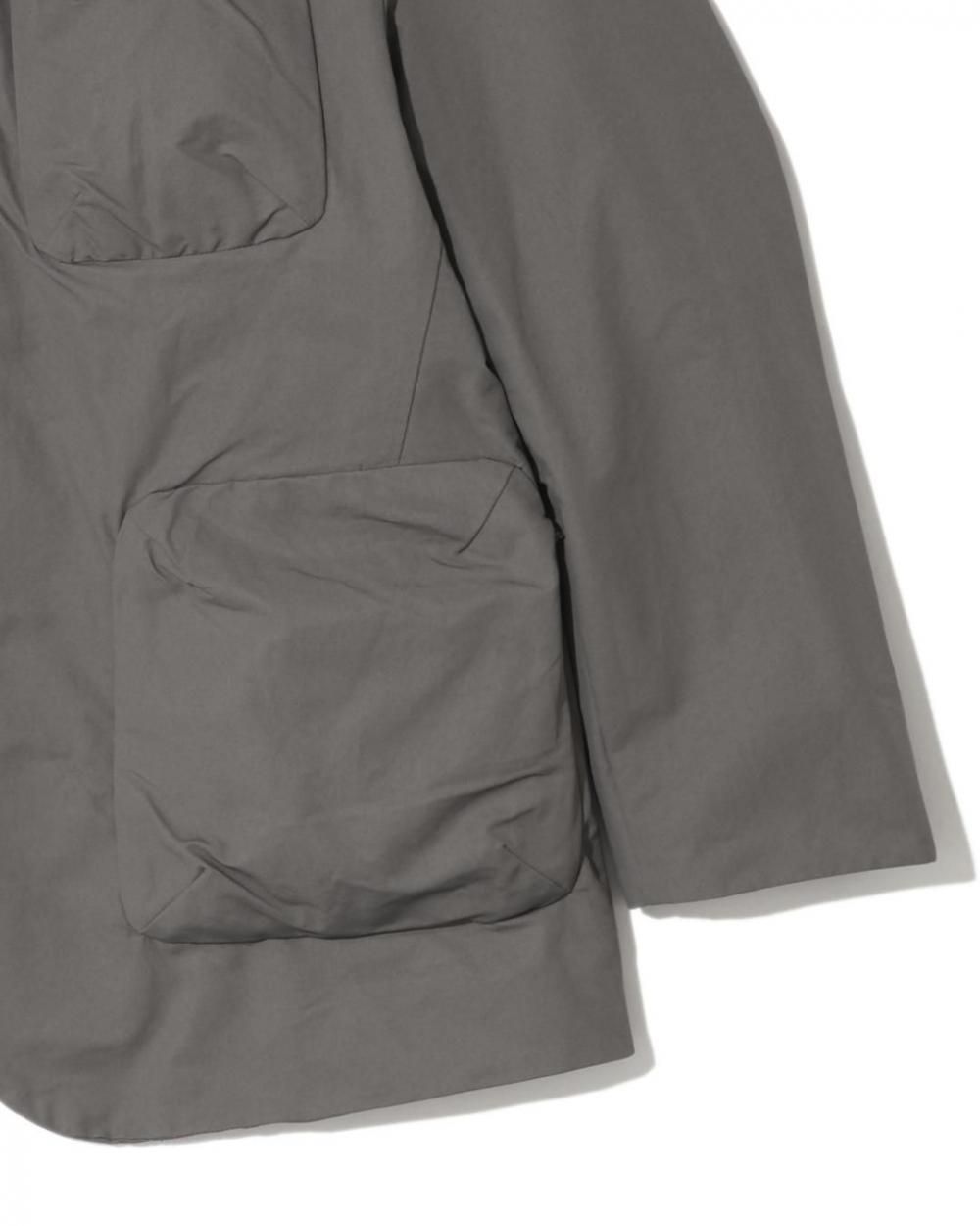 テイラードを極端にAラインにして製作し、独特なシルエットで個性的な一枚。