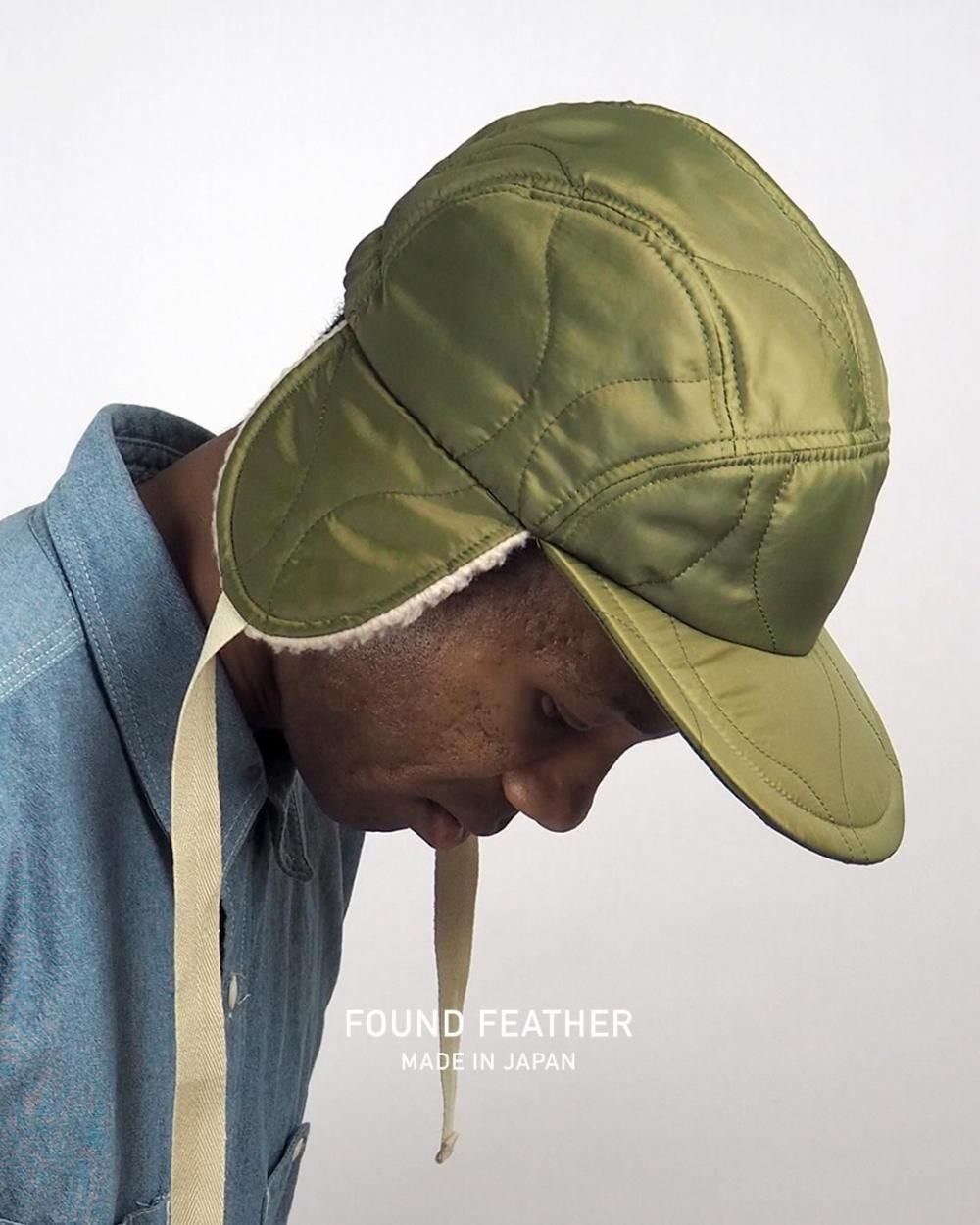 FOUND FEATHER | Halfmoon Cap with Ears - キルトミリタリーライナー