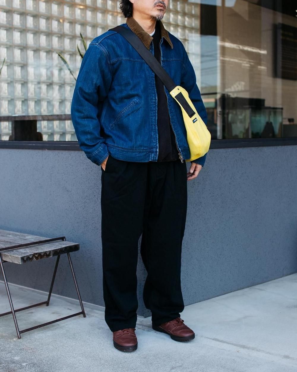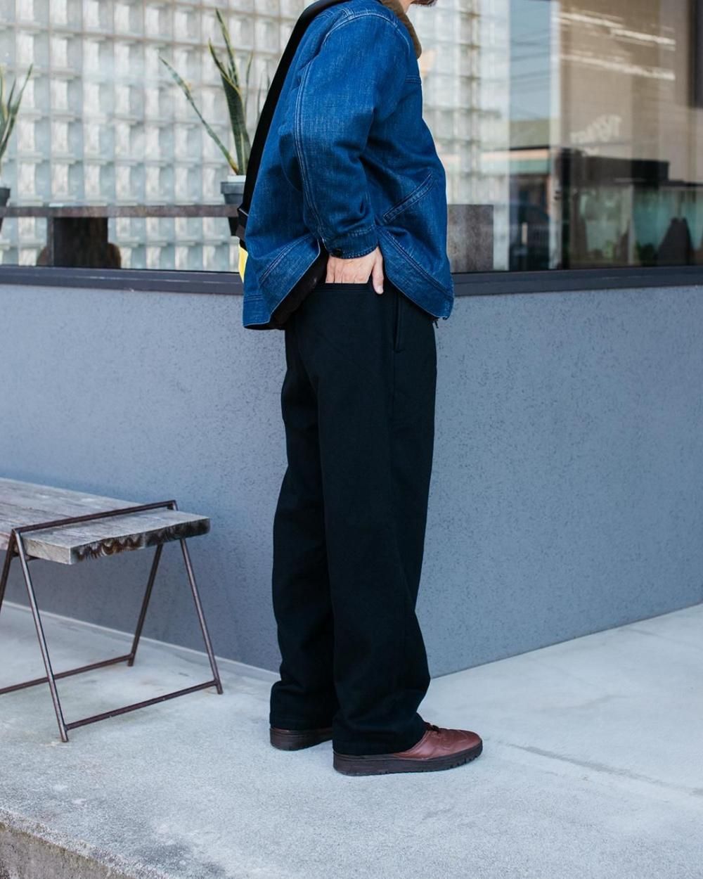 シルエットはDaily Slacksのテーパード感あるシルエットから生地の厚みを考慮し、股上・裾幅をアップデートしたシルエット。