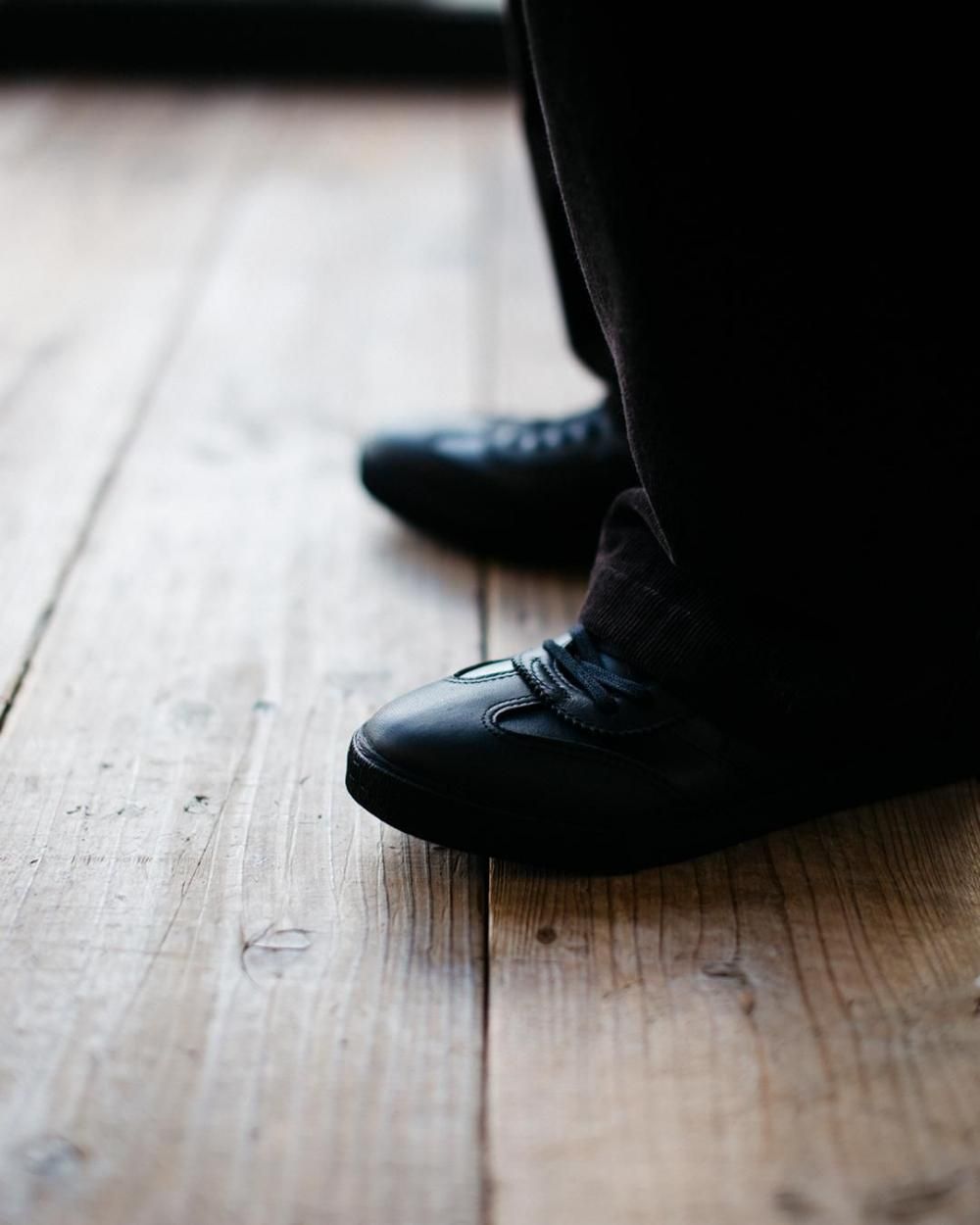 ハトメ飾りの特徴的なギザギザのカッティングやトウのパターンなど、オリジナルのイメージを残しつつ、バルカナイズド製法でアレンジ。