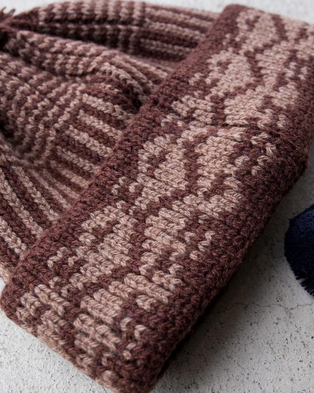 ジャガード織の1 枚仕立てで仕上げているので、ローゲージな見た目には反して軽い被り心地です。