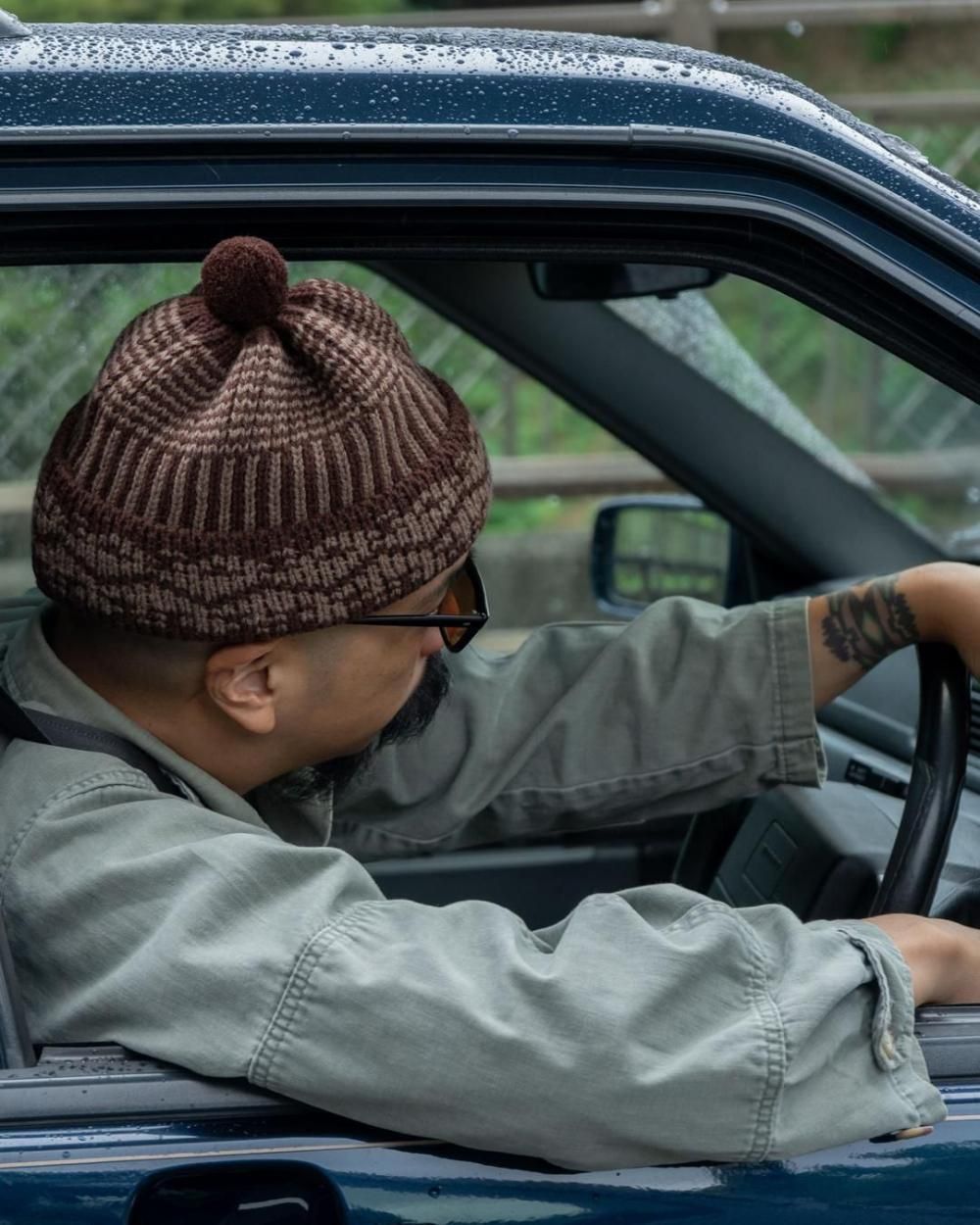 買い付けの旅先で目にしたアフリカの民族調のパターンを落とし込んだビーニー。