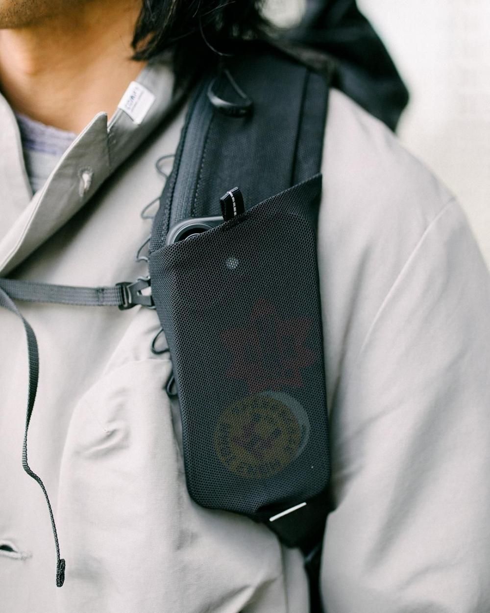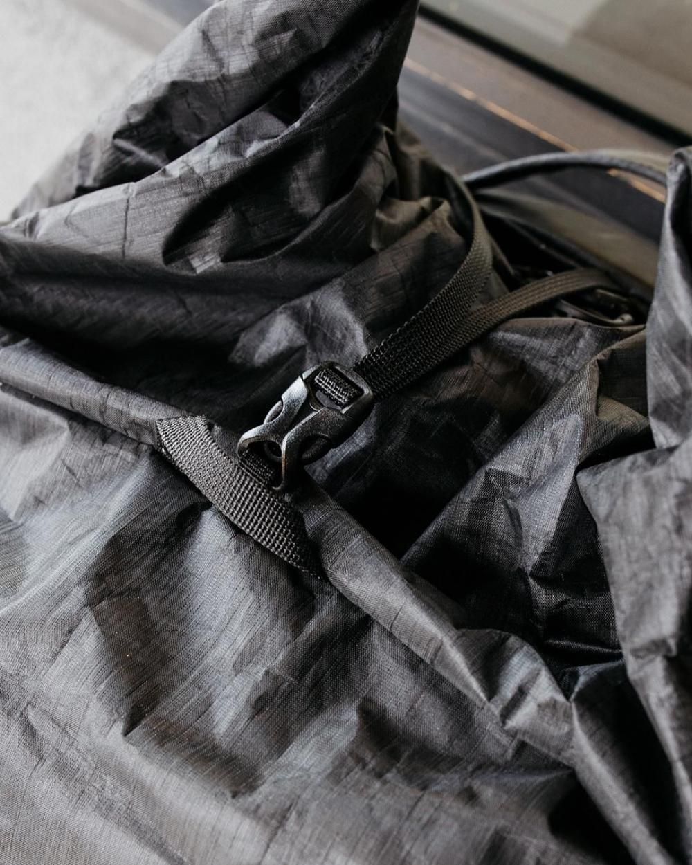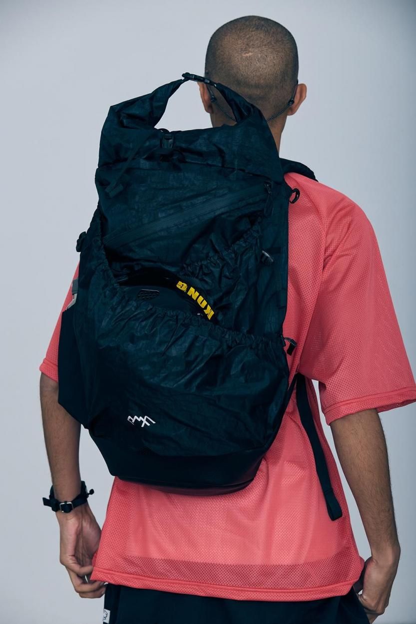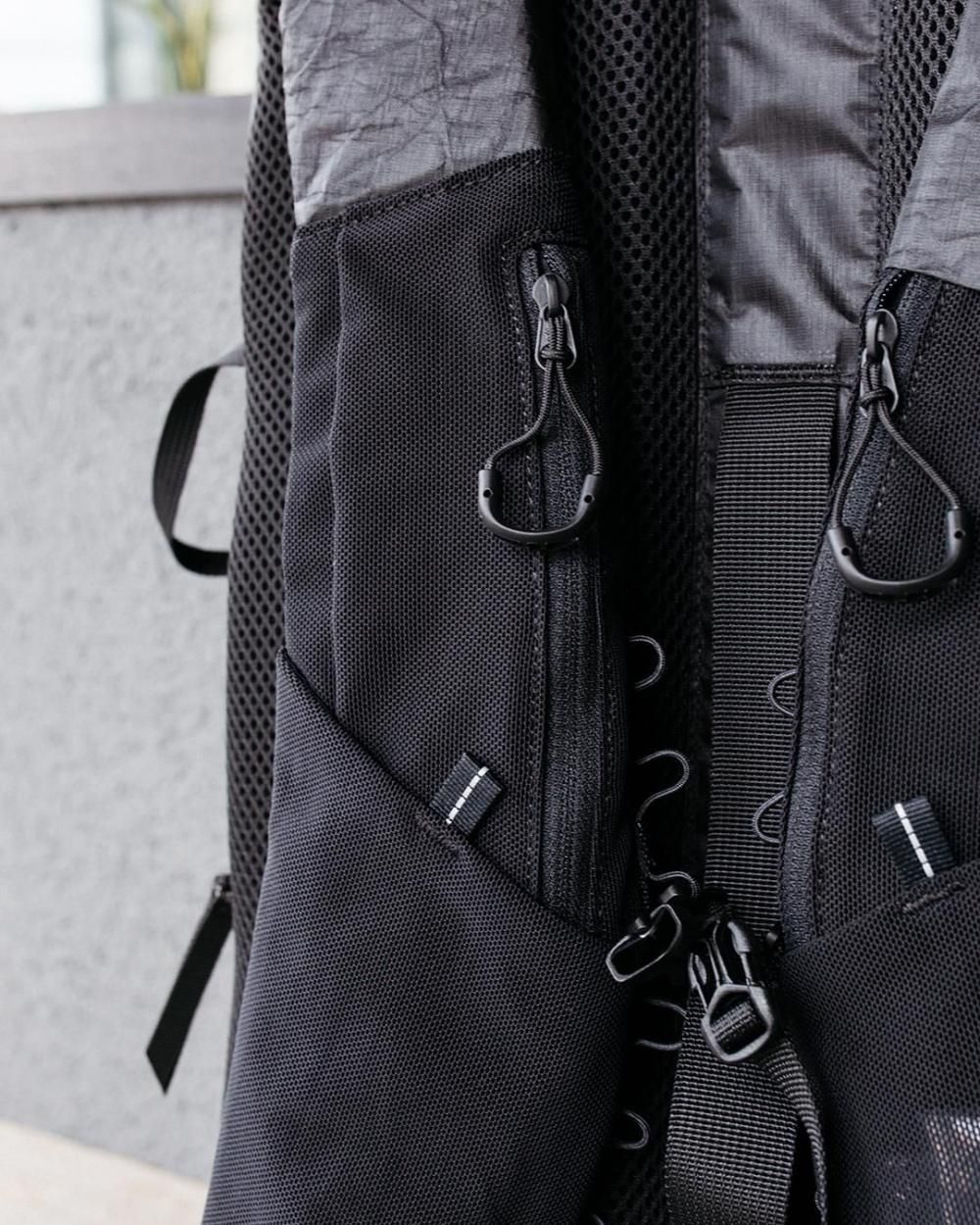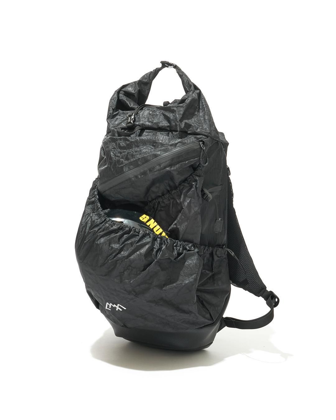 2.5oz DYNEEMA を使用し、前部分のポケットにはヘルメットも入るように容量は大きくしてある。ハイドロ用のポケットはPCスリーブとしても使用可能。