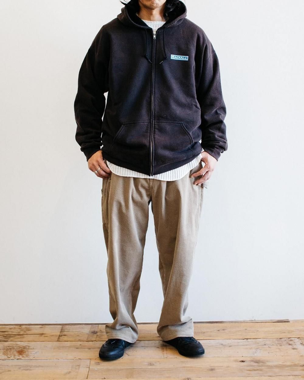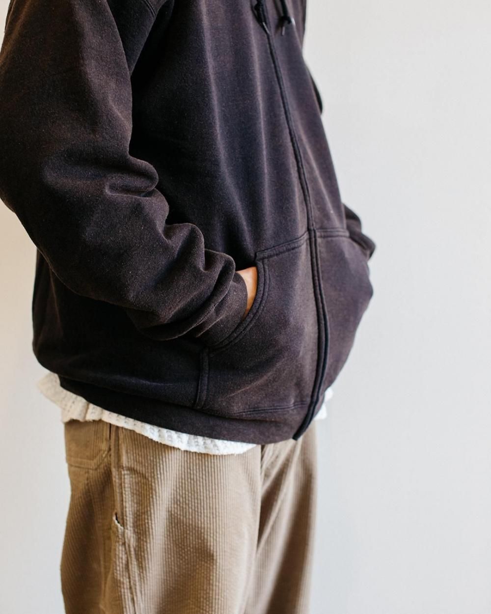 軽くて温かい裏起毛素材を採用。ジップアップ仕様なので温度調整もしやすく、洗濯後の乾きも早いため、ガレージワークから街着まで、まさに「ヘビロテ」に最適な1着です。