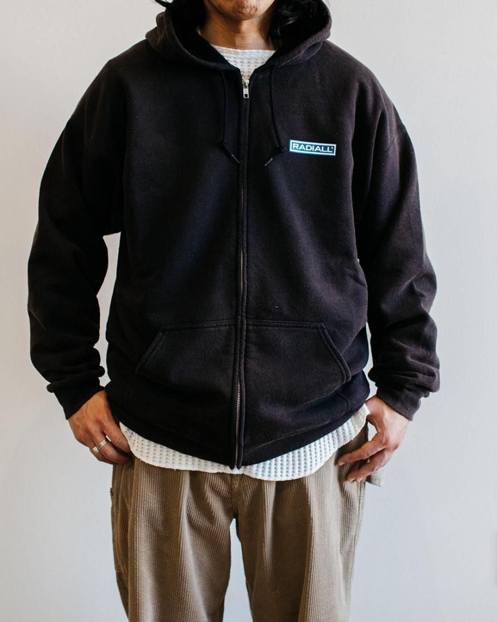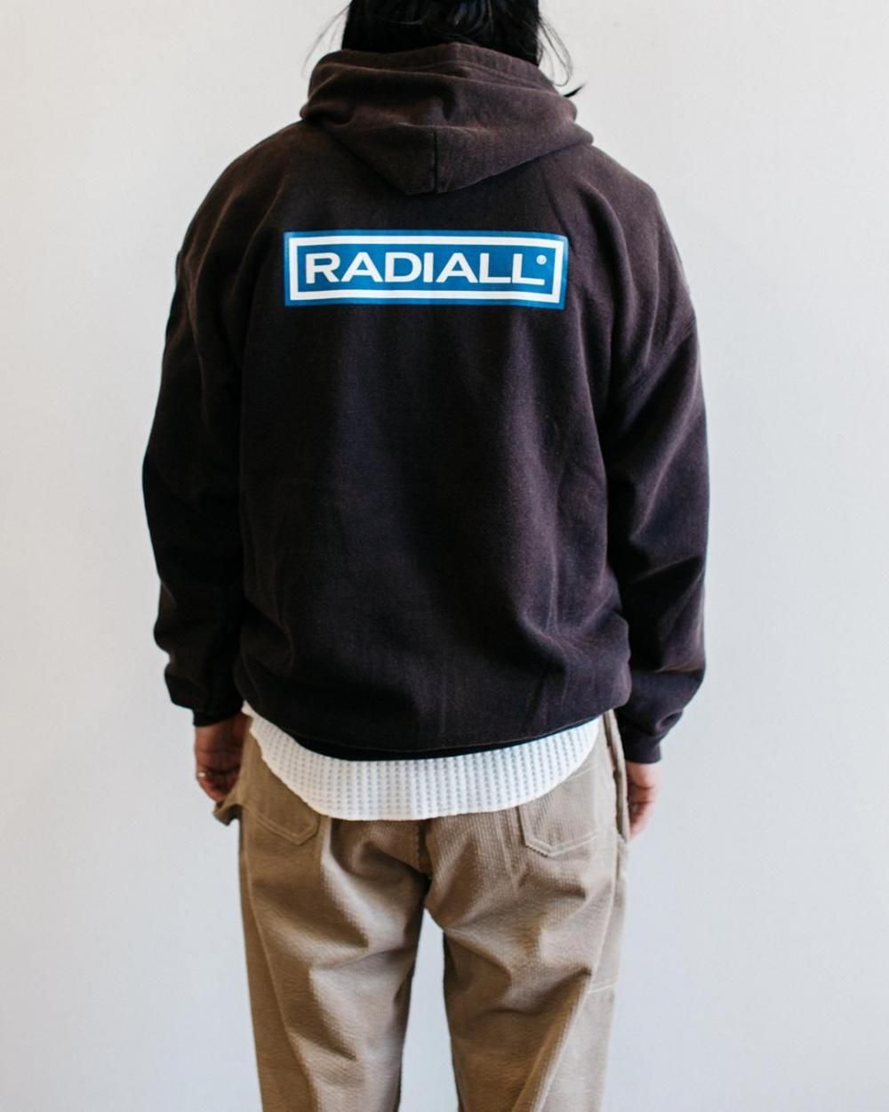 前後ともに、RADIALL定番のボックスロゴを配置。摺り切りのラバープリントがカスタムカルチャー特有の「無骨さ」と「渋み」を醸し出し、1枚でブランドのアイデンティティを体現。