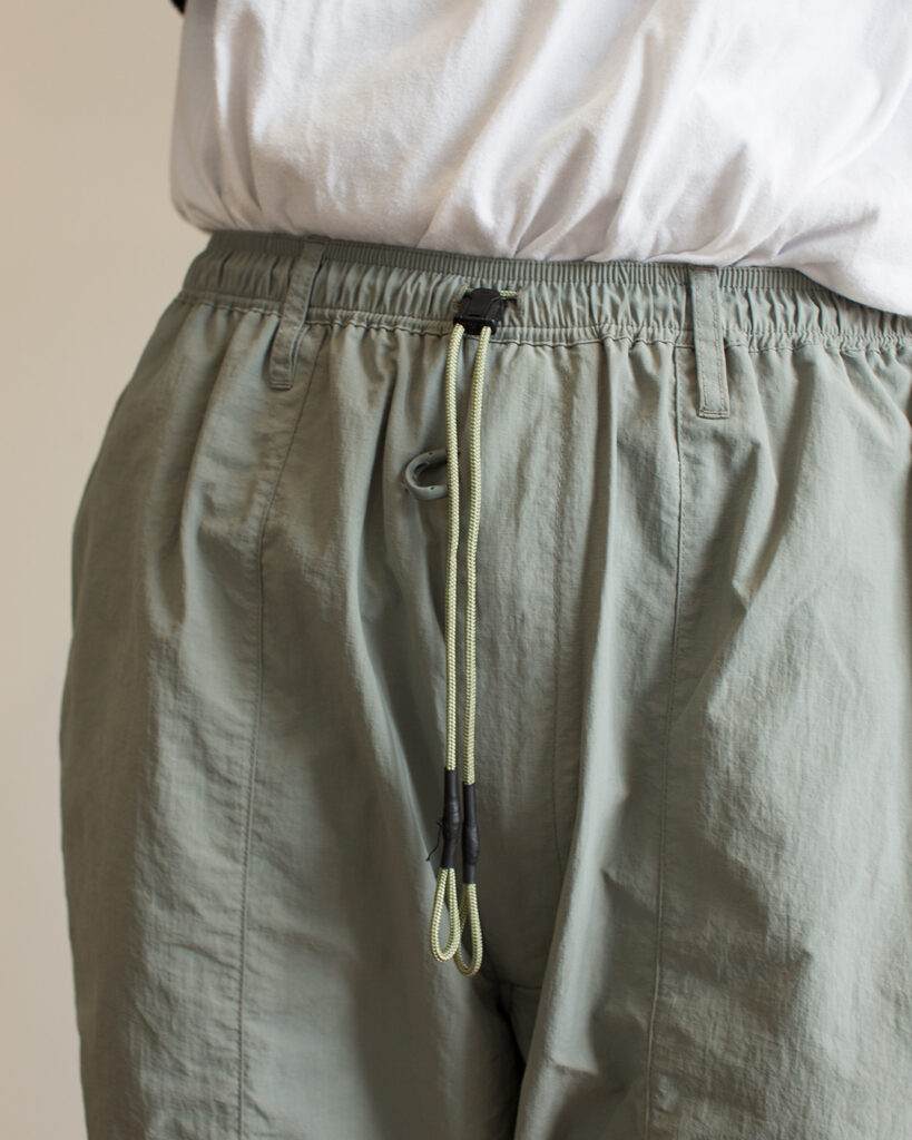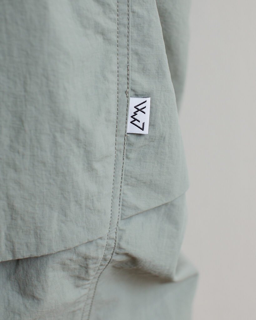 裾のドローコード先端にはブランドロゴ入りの金属製チップを配し、さりげない部分にも確かなこだわりが感じられます。